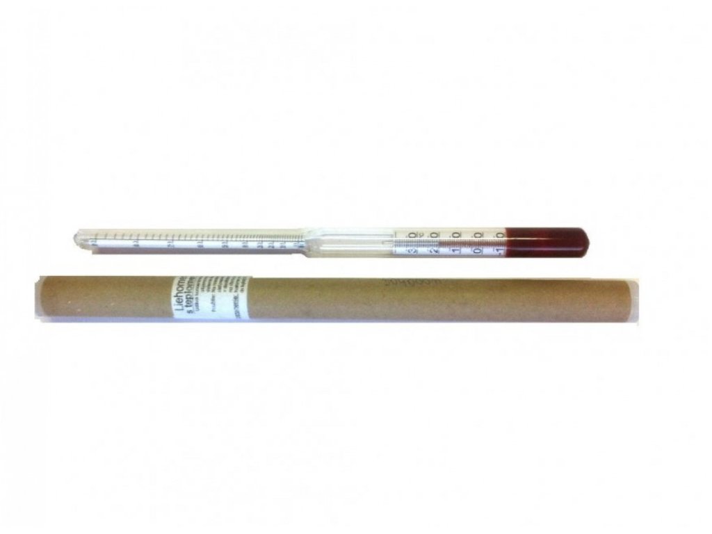 Alkoholomierz z termometrem (czasem też błędnie nazywany alkoholomierzem). W zestawie znajduje się przejrzysta instrukcja prawidłowego użytkowania.