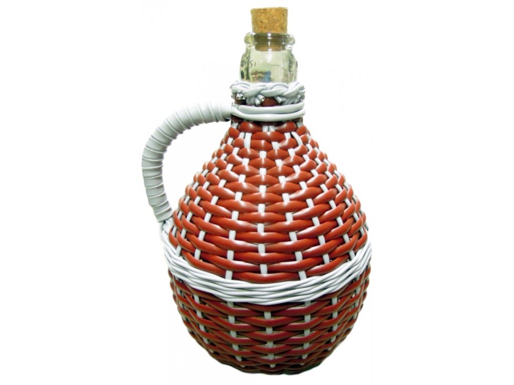 Klasyczny dzianinowy demijohn odpowiedni do wina, alkoholi i innych płynów. Wygodny do nalewania, wysokiej jakości oplot oprócz pięknego wyglądu zapewnia również częściową ochronę przed złamaniem. Ręcznie robione, kolor sutaszu może się różnić w zależności od aktualnej dostępności w magazynie.