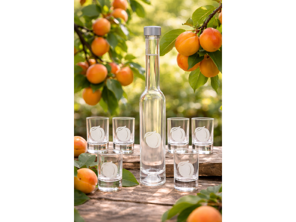 - Delikatny motyw moreli nadaje zestawowi osobisty wygląd i tematycznie pasuje do owocowych destylatów.
