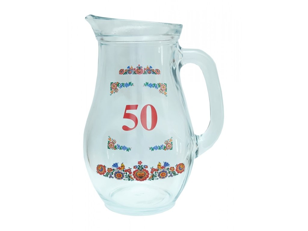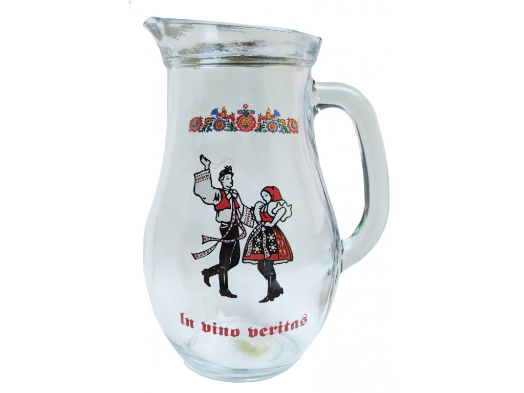 Dzbanek o pojemności 1 l z nadrukiem morawskiego ornamentu. Odpowiedni jako prezent nie tylko dla winiarzy i sadowników, ale także dla miłośników wina i innych trunków.