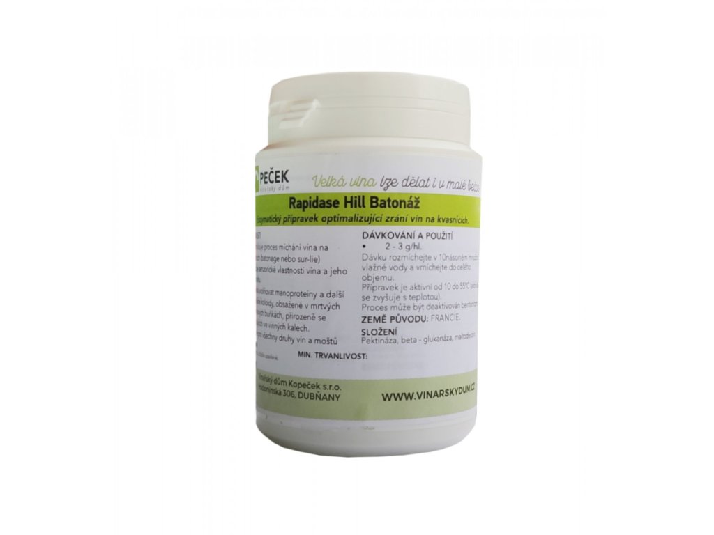 Rapidase Hill Batonnage zwiększa uwalnianie mannoprotein i innych korzystnych koloidów zawartych w martwych komórkach drożdży naturalnie występujących w osadzie winnym. Jego zastosowanie pozwala na otrzymanie win pełnych i zrównoważonych. Jest mikrogranulowanym prepareatem na który składaja się enzymy pektolityczne i β-glukanaza.