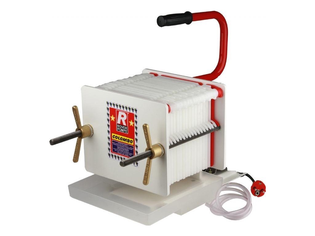 Niezawodny lakierowany filtr z pompą (ROVER 20) do żywności. Wymiary płyt filtracyjnych: 20x20. Filtruje 350-500 l/h w zależności od mętności cieczy. To jest na 12 płytek filtracyjnych.