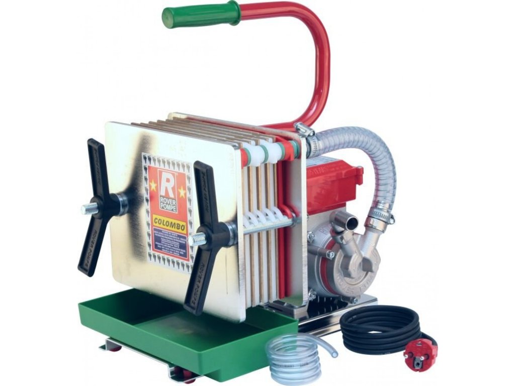 Niezawodny filtr ze stali nierdzewnej z pompą (ROVER 20i) do żywności. Wymiary płyt filtracyjnych: 20x20. Filtruje 200-300 l/h w zależności od mętności cieczy. To jest dla 6 płyt filtracyjnych