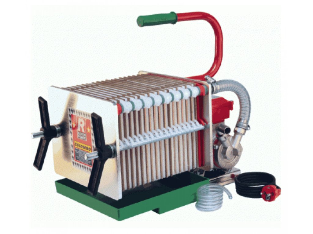 Niezawodny filtr ze stali nierdzewnej z pompą (ROVER 20i) do żywności. Wymiary płyt filtracyjnych: 20x20. Filtruje 550-800 l/h w zależności od mętności cieczy. To jest dla 18 płyt filtracyjnych