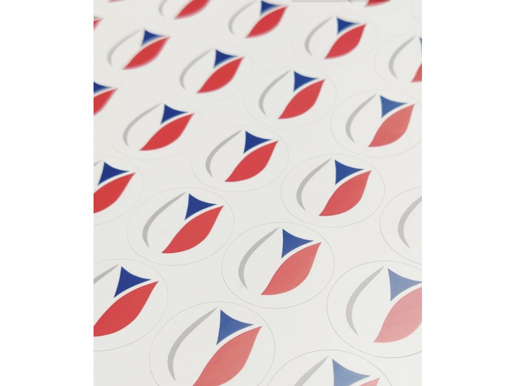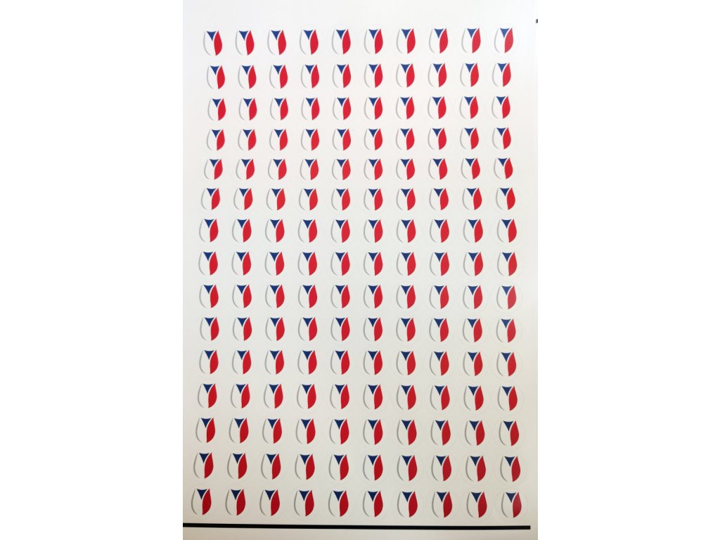 Naklejki z logo "Wina z Moraw wina z Czech". Czeska flaga w kształcie kielicha, która jest obowiązkowym oznaczeniem win produkowanych z winogron uprawianych w Czechach. Cena dotyczy 1 arkusza (150 naklejek na arkuszu).