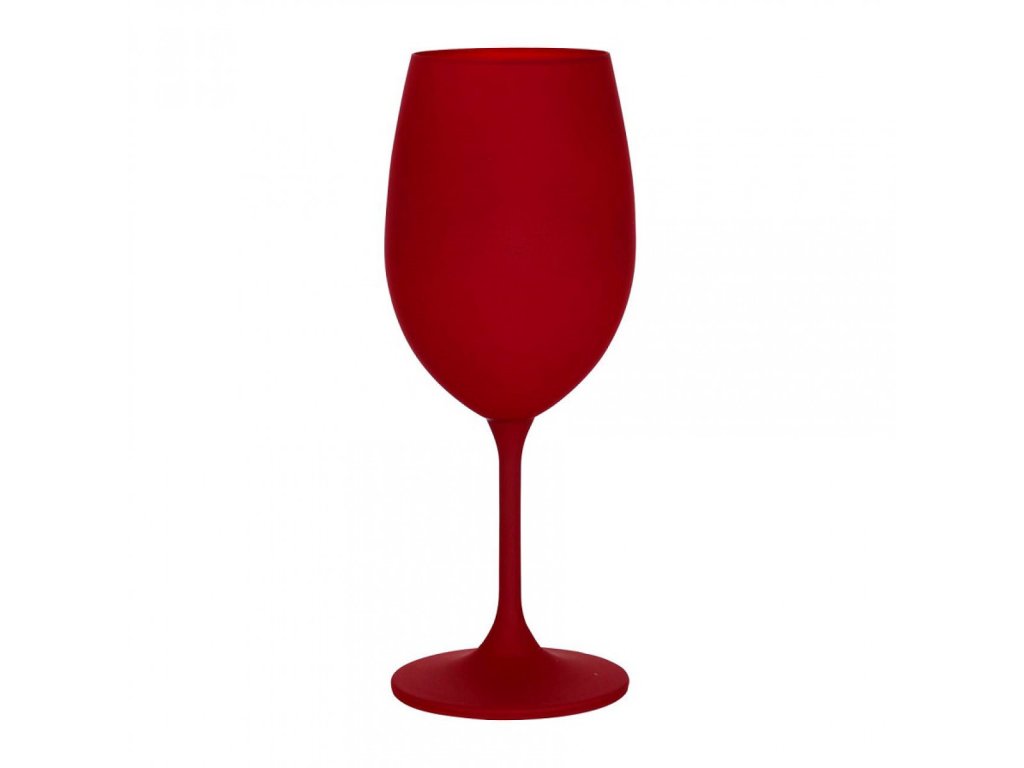 Kieliszek do wina z bordową dekoracją na całej powierzchni.