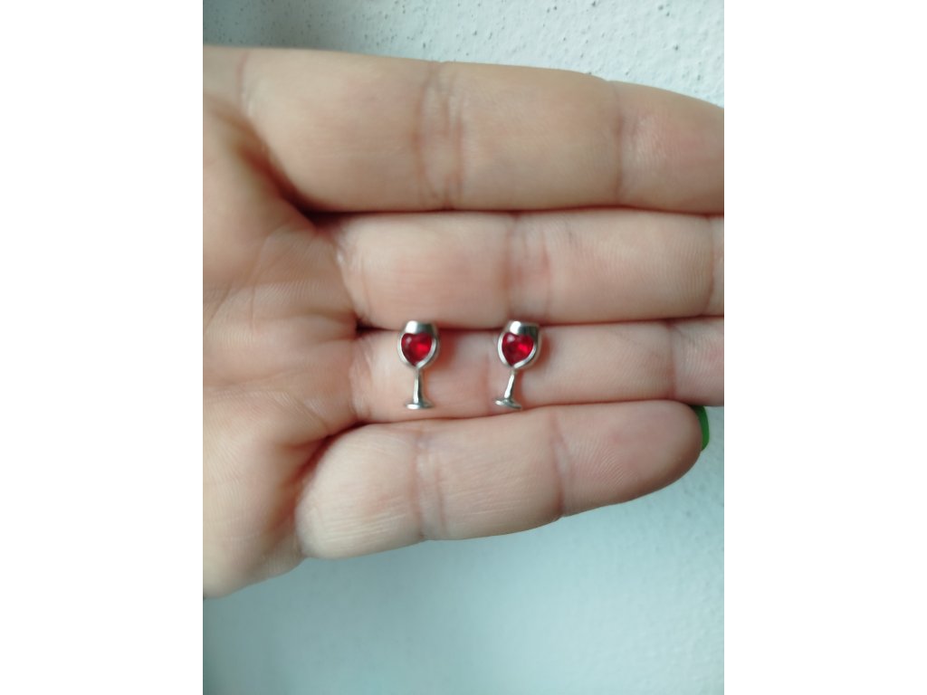 Kolczyki kieliszek czerwonego wina - serce