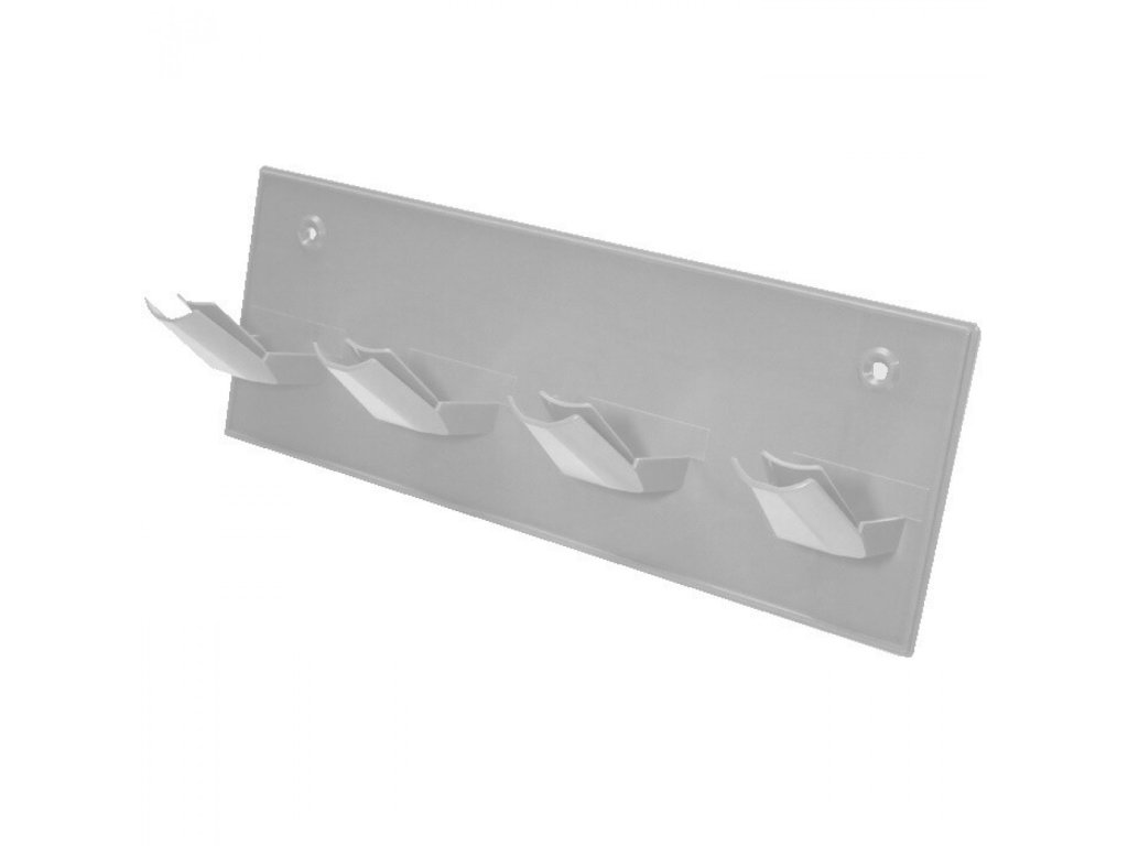 Plastikowy ociekacz do szklanek i kieliszków, montowany na ścianie. Przeznaczony na 4 szklanki lub kieliszki, wykonany z tworzywa sztucznego dopuszczonego do kontaktu z żywnością.