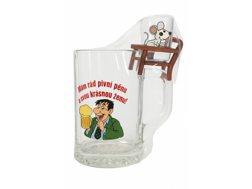 Zabawny zestaw prezentowy szklanego kufla i kieliszka przymocowanego w stylowym drewnianym krześle ucieszy każdego miłośnika piwa i humoru. Idealny jako nietypowy prezent dla mężczyzn z poczuciem humoru i radością z życia.