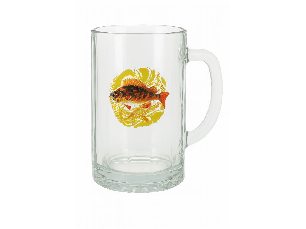 Solidny kufel piwny z oryginalnym nadrukiem ryby wprowadza do każdego łyka orzeźwiającą atmosferę natury. Doskonale nadaje się nie tylko dla wędkarzy, ale także dla miłośników tradycyjnego szkła i rzetelnego rzemiosła.