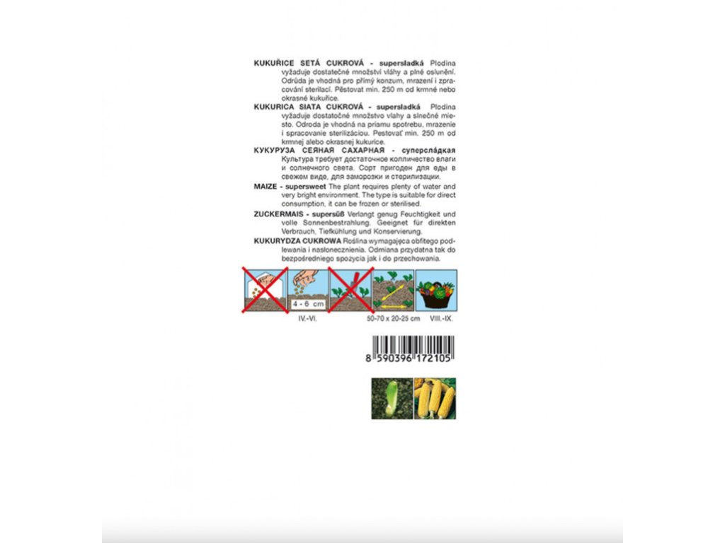 Jeśli kukurydza cukrowa zostanie posadzona blisko (100-300 m w zależności od charakteru terenu i obecności naturalnej bariery, np. żywopłotu, ściany z drzew itp.) innych kukurydz (pastewnych, pukanowych, ozdobnych), może dojść do zapylenia krzyżowego i ziarna kukurydzy cukrowej stracą swoją przyjemną słodycz!