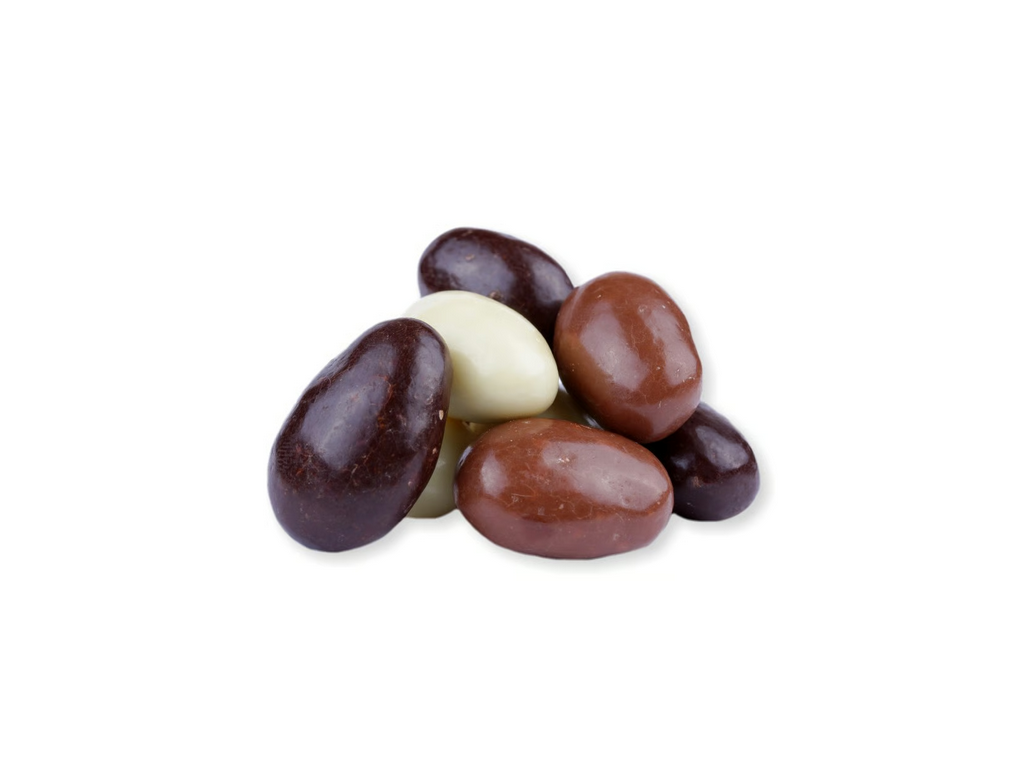 Kombinacja wysokiej jakości migdałów i trzech rodzajów czekolady zadowoli każdego miłośnika słodyczy. Ta pyszna mieszanka jest idealna jako luksusowa przekąska do wina, drobny prezent lub stylowa przekąska na przyjęciach.