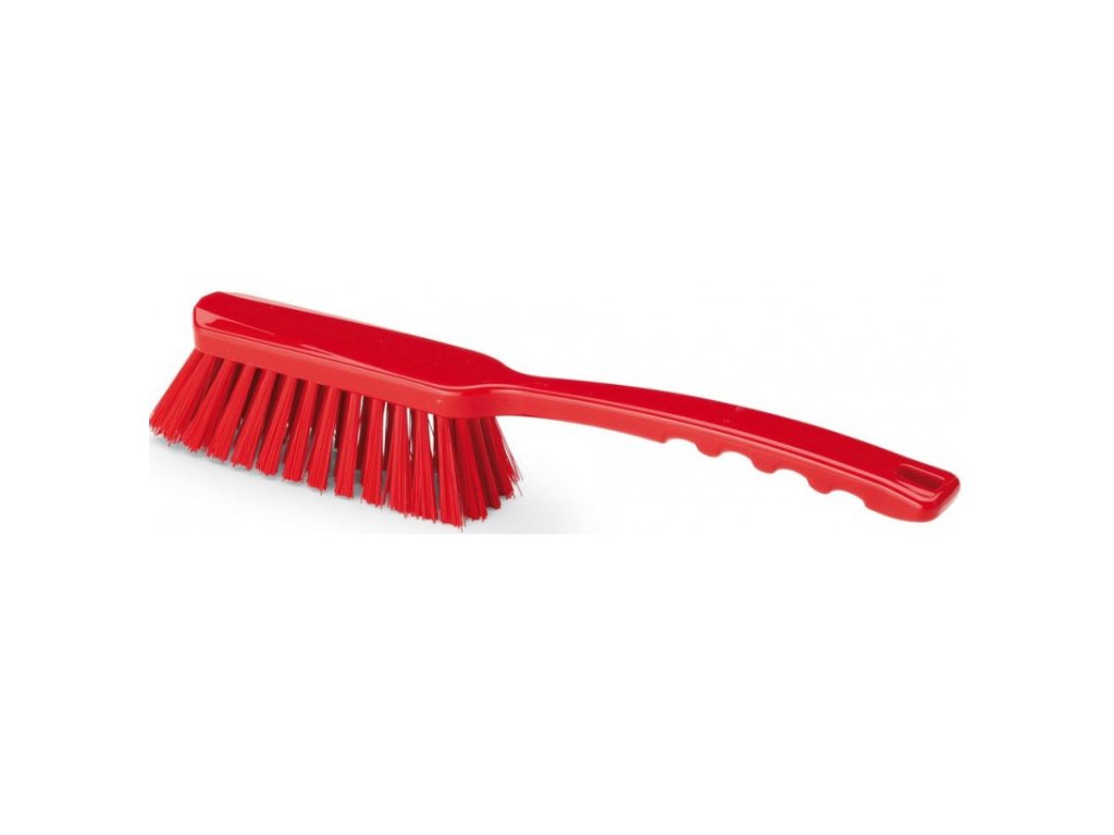 Miotła plastikowa z włóknami syntetycznymi, odpowiednia do czyszczenia stołów roboczych, desek do krojenia, tarek itp. Dostępna również w kolorze niebieskim i białym.