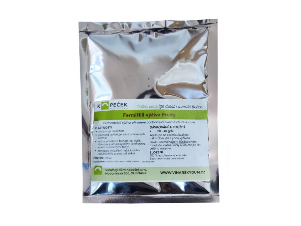 Fermihill Fruity to autolizowane drożdże, wyselekcjonowane ze względu na bogactwo aminokwasów, prekursorów aromatu estrowego, powstającego podczas fermentacji alkoholowej. Obecność ergosterolu jest również korzystna, ponieważ lipidy są potrzebne drożdżom do ochrony błony komórkowej i zapewnienia zdolności do zużywania aminokwasów w celu produkcji estrów.