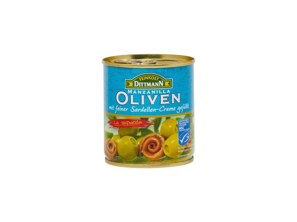 Popularna hiszpańska delicja w puszce – starannie wybrane zielone oliwki odmiany Manzanilla nadziewane pyszną pastą z sardeli oferują wyjątkowe doznania kulinarne. Delikatne słone nuty i wyrazisty śródziemnomorski smak doskonale komponują się z winem i innymi przysmakami na Twoim stole.