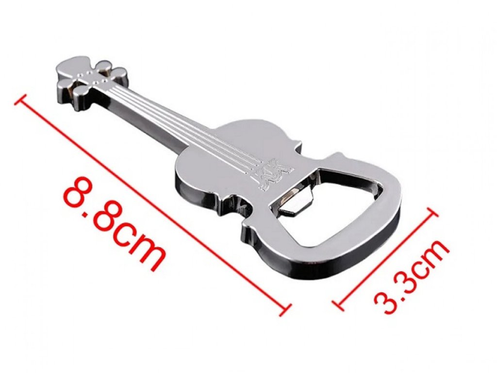 Otwieracz do butelek w kształcie gitary. Szeroko stosowane w kuchniach, barach, restauracjach itp. Wykonane z wysokiej jakości stali nierdzewnej. Otwieracz może być także świetnym prezentem.