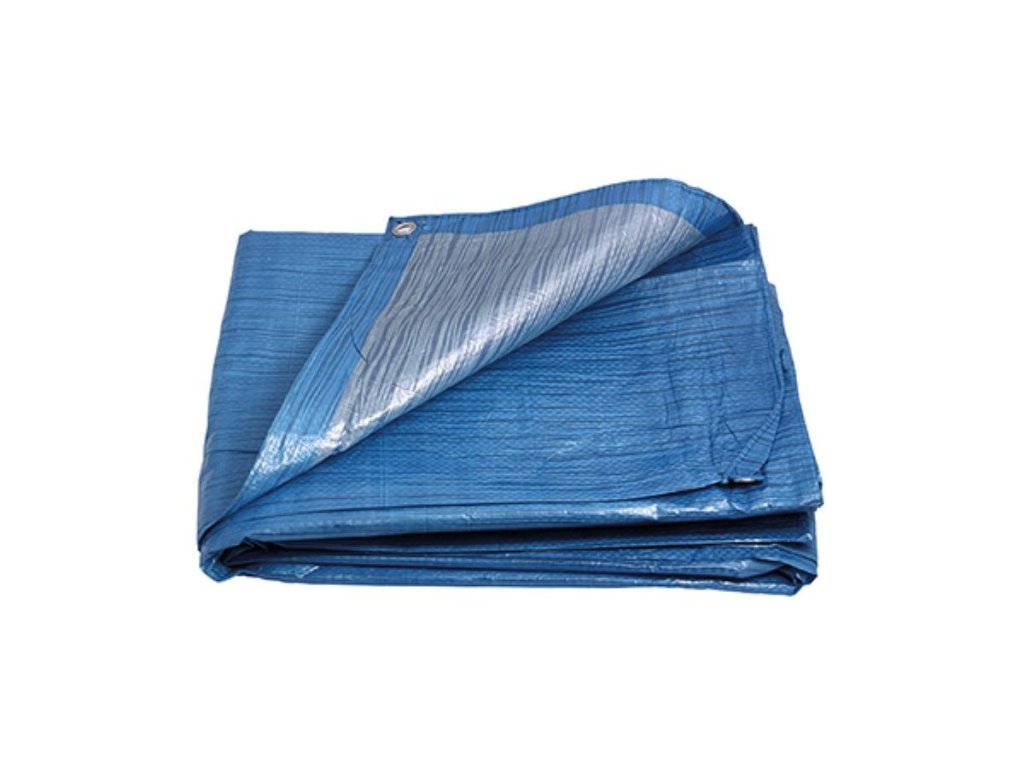 Plandeka STANDARD 5 x 5, wykonana z materiału wodoodpornego, doskonale nadaje się do przykrycia materiałów budowlanych, samochodów, motocykli, mebli ogrodowych itp.