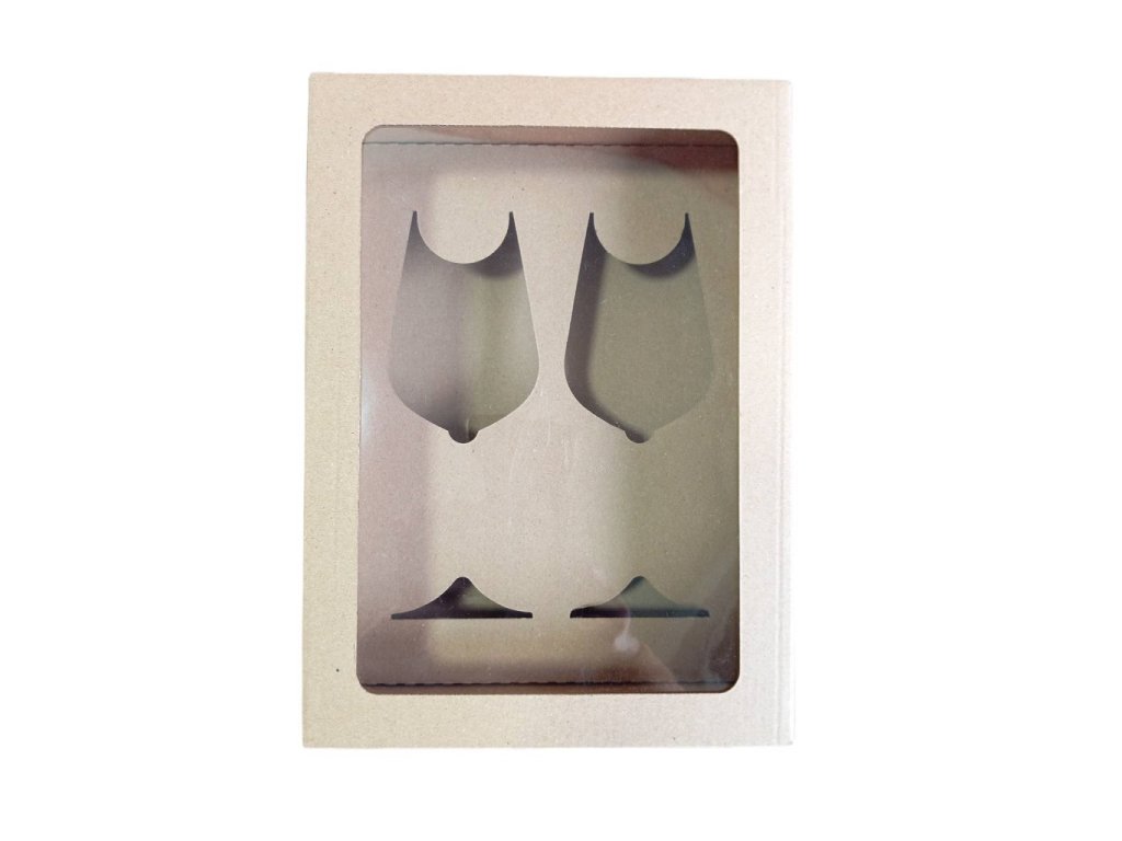 Pudełko upominkowe na 2 szklanki wykonane z kartonu i przezroczystej folii plastikowej. Wymiary zewnętrzne 22,5x30,8x8,8cm.