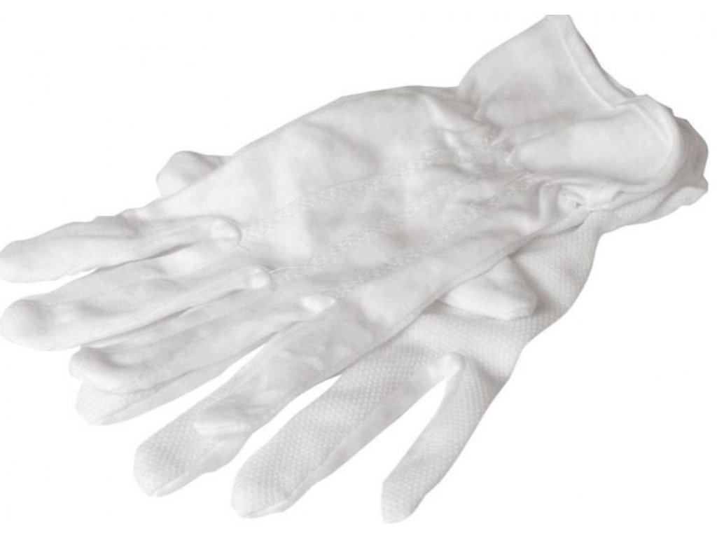 • materiał: szyta dzianina bawełniana bez mankietu, wnętrze dłoni pokryte PCV