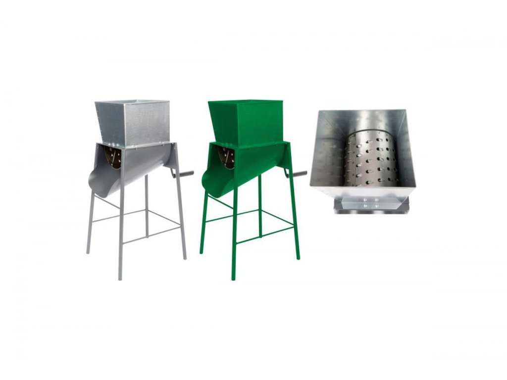 Maszyna do cięcia buraków, stojąca z napędem ręcznym. Wsyp metalowy, konstrukcja metalowa.