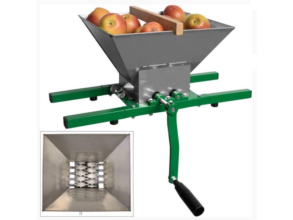 Solidny ręczny rozdrabniacz owoców o pojemności 7 l przeznaczony do efektywnego przygotowania owoców przed tłoczeniem – idealny pomocnik przy produkcji domowego soku lub wina. Dzięki nierdzewnej zasypce i aluminiowym walcom zapewnia łatwe rozdrabnianie owoców pestkowych i jagodowych.