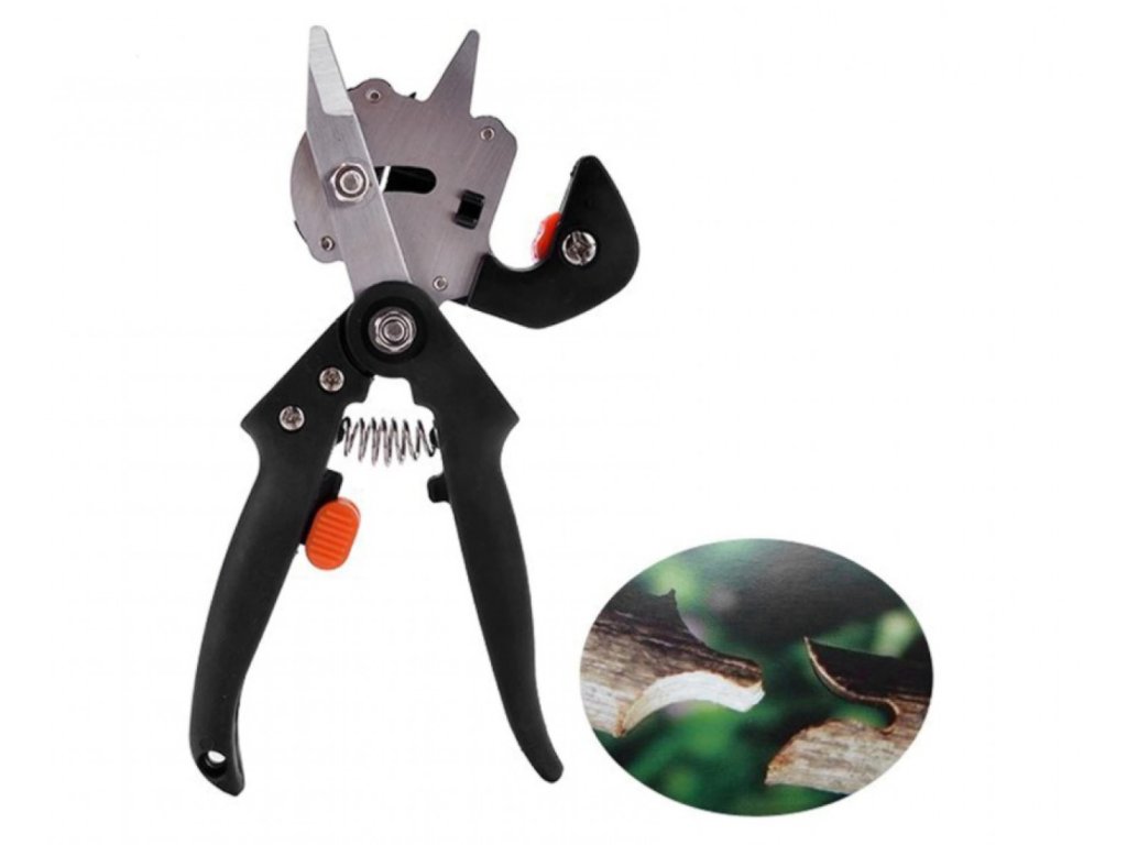 Użyj sekatora do cięcia gałęzi i liści, a ostrza po drugiej stronie do przygotowania przelotek. Następnie składasz je razem i zaklejasz taśmą do szczepień.