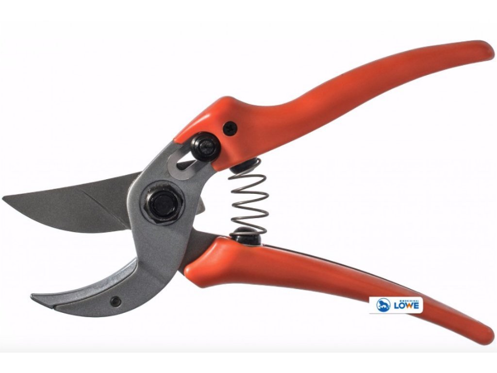 NEW LÖWE 15. Kompaktow sekator kowadełkowy z zakrzywionym ostrzem. Kompaktowa konstrukcja, wąskie spiczaste ostrze. Lekkie. Dobrze wyważone (nie obciążają rąk ciężarem ostrza). Śruba blokująca umożliwia zablokowanie sekatora, gdy nie jest używany i zapobiega zużyciu ostrza i kowadełka. Łączy zalety sekatorów kowadełkowych i nożycowych (obejściowych): kształt ostrza zapobiega zsuwaniu się ciętej gałęzi. Niewiarygodnie łatwe cięcie.