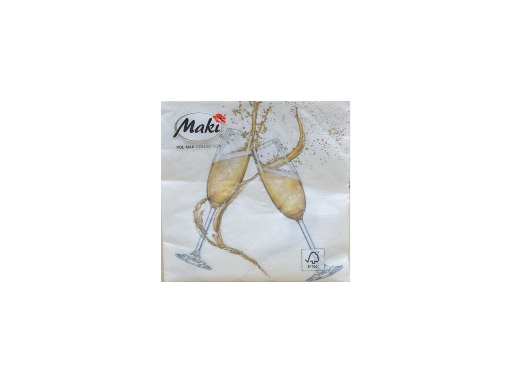 Stylowe papierowe serwetki z motywem szampana doskonale podkreślają uroczystą atmosferę przy każdej okazji. Elegancki design z dwoma stukającymi się kieliszkami jest idealny na chwile radości i wspólne toasty.