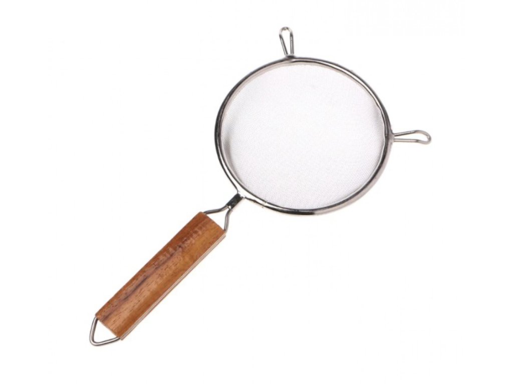 Bardzo drobne sitko wykonane z wysokiej jakości stali nierdzewnej z trwałą drewnianą rączką zapewniającą pewny chwyt. Dwie warstwy siatki ze stali nierdzewnej tworzą mocniejsze połączenie i mocniejsze trzymanie.