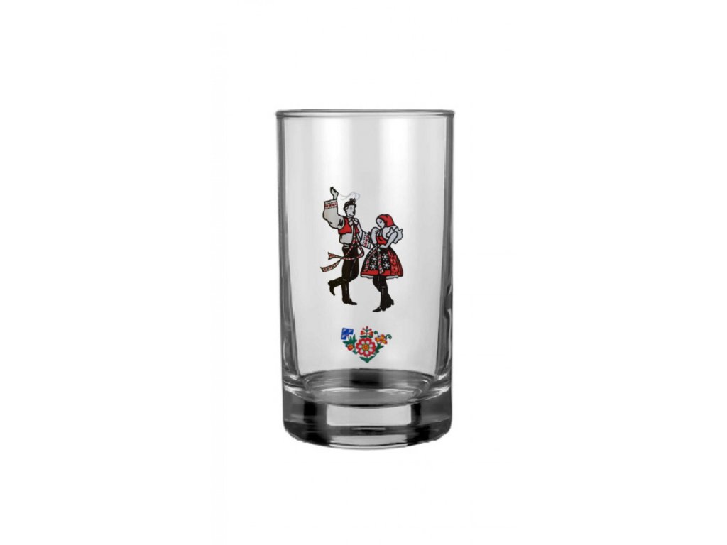 Kieliszek Classico o pojemności 100 ml z nadrukiem przedstawiającym parę w kostiumie i motywem słowackim. Nadaje się do wody, wina itp.