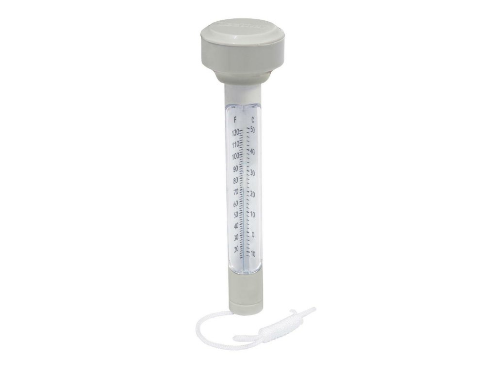 Termometr basenowy wykonany z tworzywa ABS umożliwia łatwy odczyt temperatury w skali Celsjusza i Fahrenheita. Termometr do pływania jest zawieszony na sznurku, więc nie może się swobodnie poruszać po basenie.