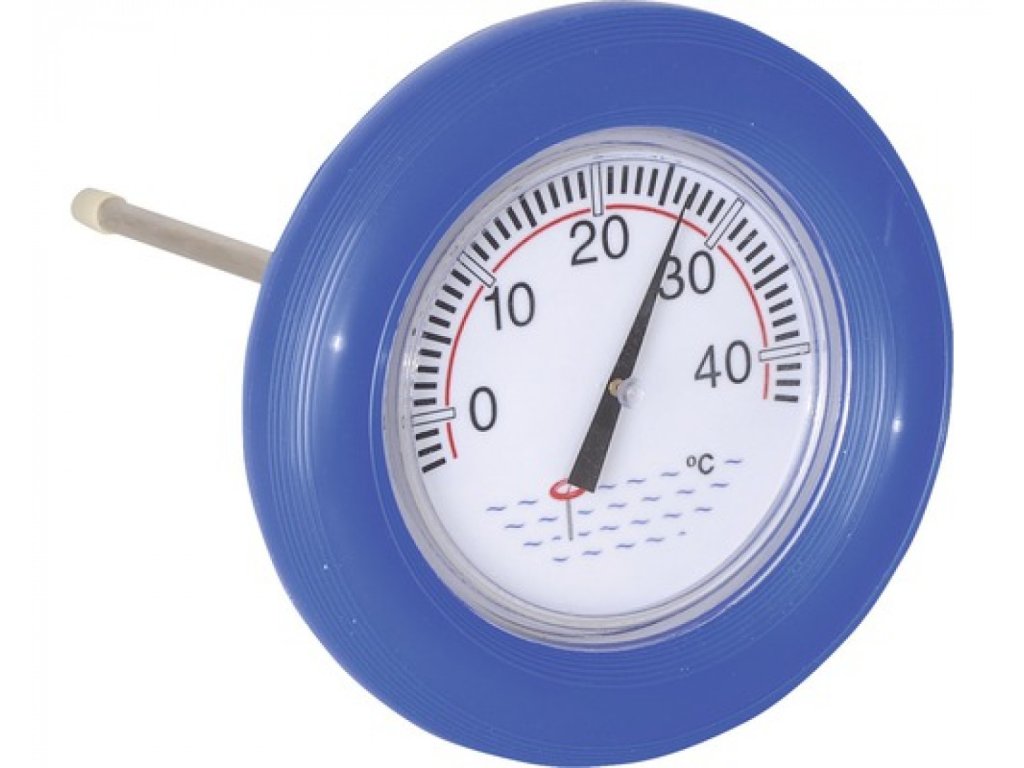 Okrągły termometr pływający umożliwiający łatwe określenie temperatury wody w basenie. Duża, czytelna skala, w zestawie znajduje się również sznurek umożliwiający przymocowanie termometru do konstrukcji basenu lub skimmera.