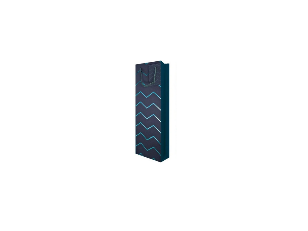 Elegancka torba prezentowa na butelkę w ciemnym wykonaniu z błyszczącym niebieskim tłoczeniem nada Twojemu winu lub innemu prezentowi wyjątkowy wygląd. Praktyczne wymiary i mocny uchwyt umożliwiają łatwe przenoszenie i stylową prezentację.