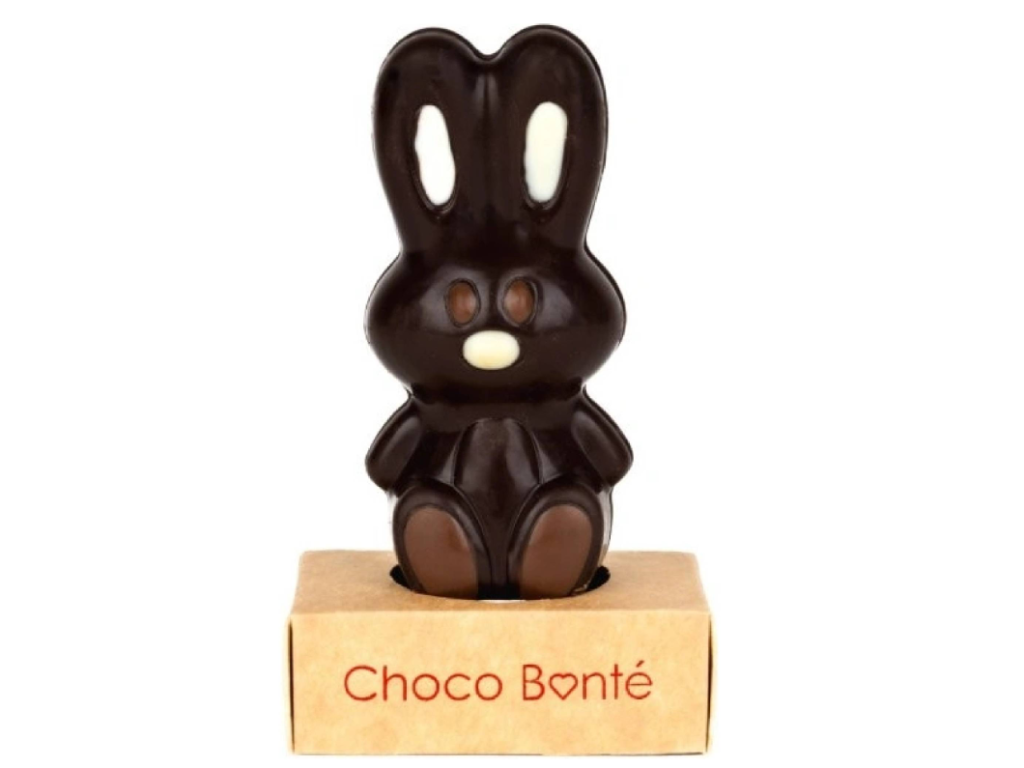 Gorzka czekoladowa figurka w kształcie wielkanocnego zająca ucieszy nie tylko dzieci, ale i dorosłych swoją delikatną słodyczą i starannym wykonaniem. Doskonale nadaje się jako stylowy element wielkanocnych paczek lub jako samodzielny prezent.