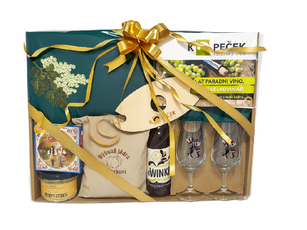 Zestaw prezentowy Winiarze w pudełku prezentowym to stylowe połączenie wysokiej jakości produktów dla wszystkich miłośników wina i morawskiej tradycji. Znajdziesz w nim praktyczne akcesoria winiarskie, regionalne przysmaki i tematyczne prezenty, które ucieszą każdego winiarza lub entuzjastę domowej produkcji wina.
