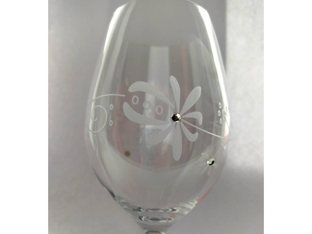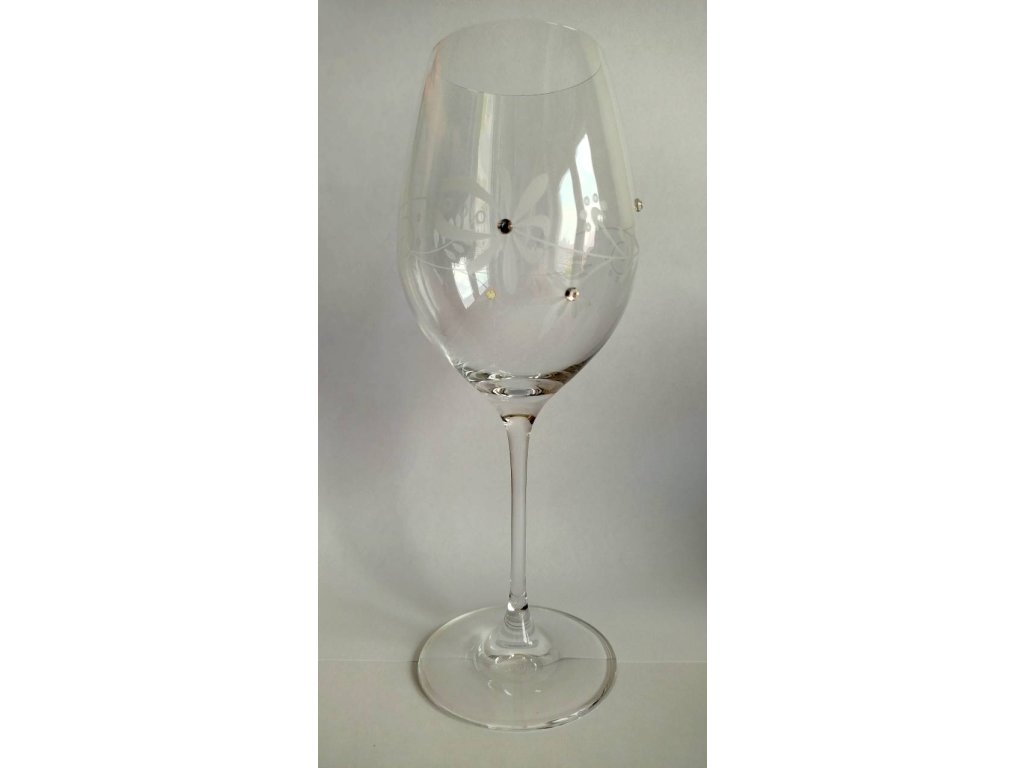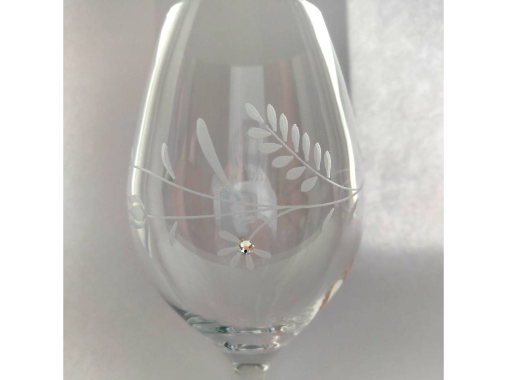 Elegancki kieliszek do wina z ozdobnym wzorem, składający się z ręcznie ciętych i wykończonych kryształków Royal Crystal.